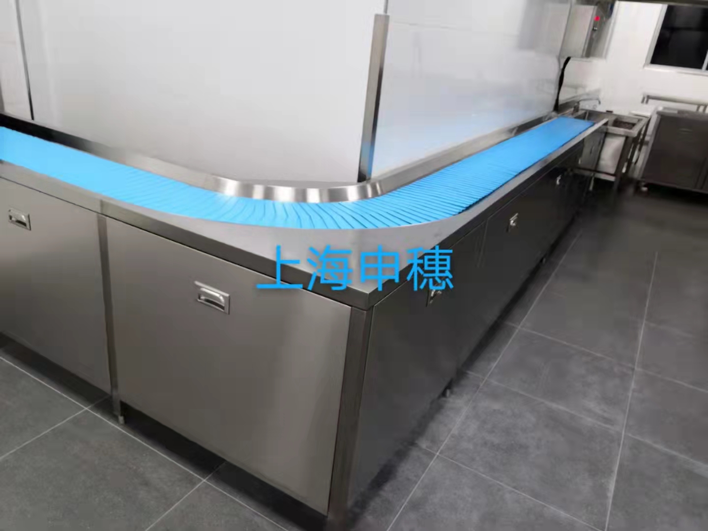 餐盤回收線(餐具回收傳送帶)的介紹 來源:上海申穗自動化設備有限公司 產品名稱:餐